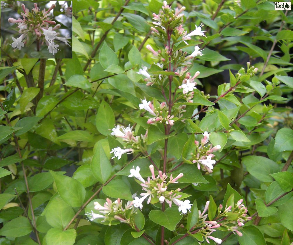 halbimmergrüner, bis 2,5 m hoher Strauch, reinweiße Blüte, Blütezeit ab August bis zum ersten Frost.