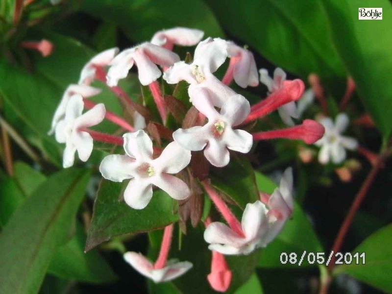 sommergrüner, bis 1,5 m hoher, breit aufrecht wachsender Strauch, endständige, stark duftende, zartrosa Blüten, erscheinen ab Juni, schöne orangerote Herbstfärbung, winterhart.