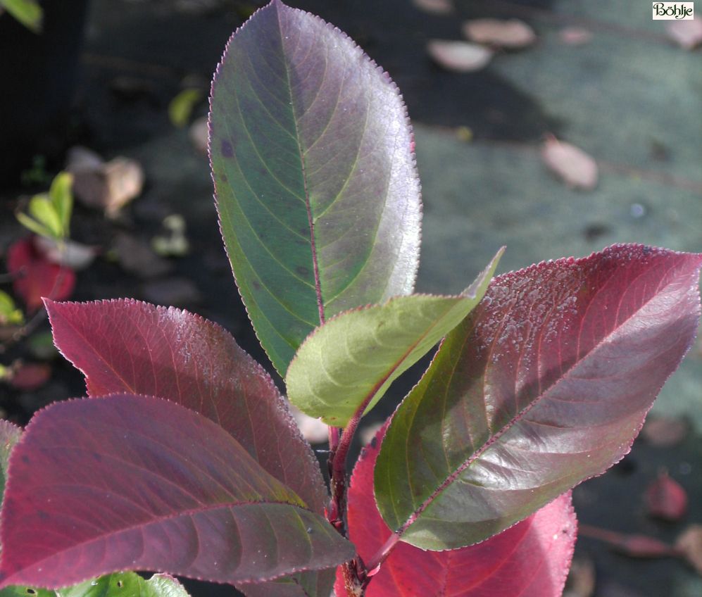 Selektion, stärkeres Holz und längere Triebe, anspruchslos, kirschgroße, schwarzblaue Früchte, essbar, Laub rundlicher als bei der Gattung, sonst ähnlich.