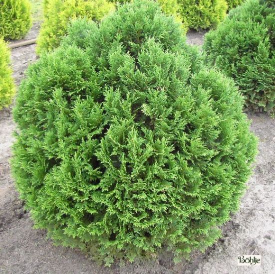 rundkugelige, kompakt wachsende Zwergform, Zweige dichttriebig, blaugrüne Benadelung.