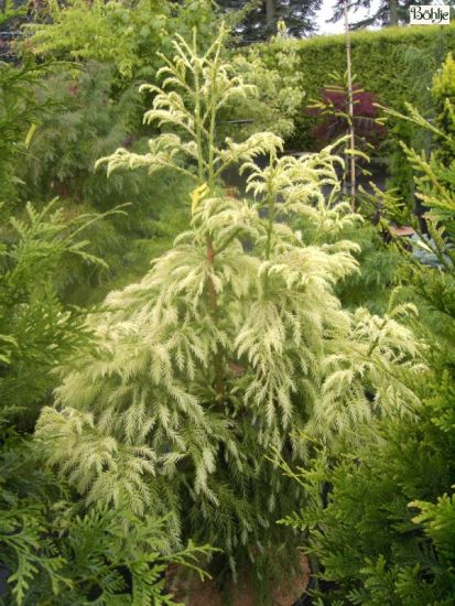 mittel bis starkwüchsig, buschig, aufrecht, Nadeln goldgelb.
