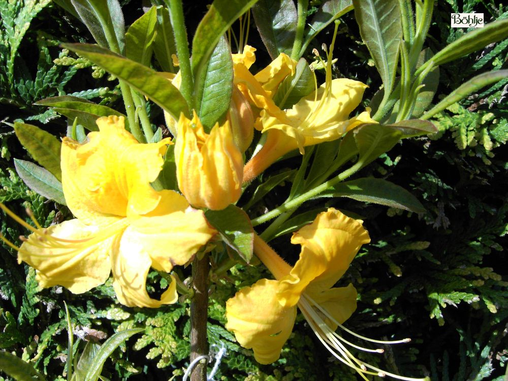 Blüte: innen goldgelb, dunkelorange gezeichnet