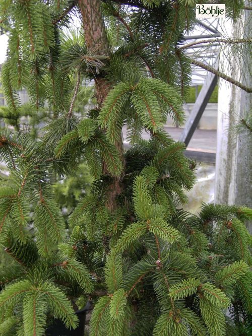 eigene schwachwüchsige Selektion aus der Schlangenfichte, deutlich kompakter und schlanker, jedoch erst im Alter sichtbar.