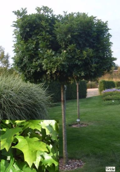 schwachwachsende, kugelige Zwergform der Sumpf - Eiche, als Hochstamm veredelt.