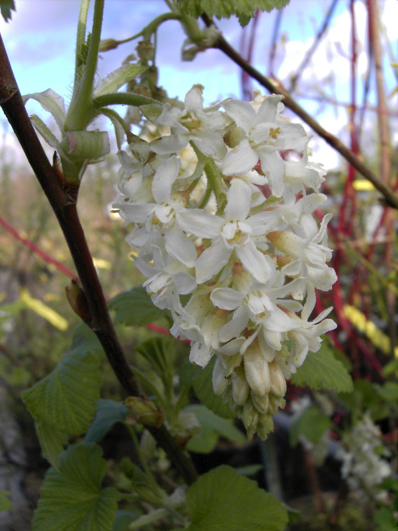 stark aufrecht wachsend, bis 3 m hoch, Blätter hellgrün, Blüten reinweiß, in hängenden Trauben, Blütezeit im April mit dem Laubaustrieb.