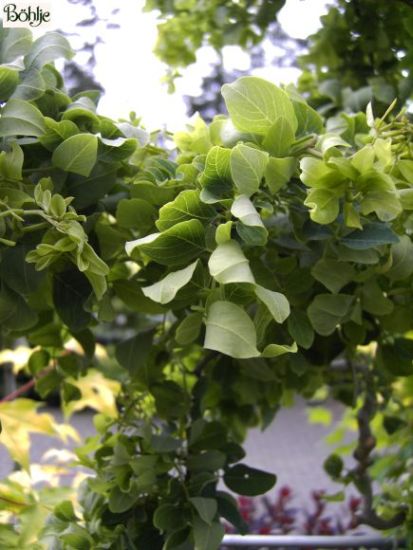 sommergrün, schwachwachsender Strauch, 1m, kokenzieherartig gedrehte Triebe, kleine, leicht gedrehte Blätter.